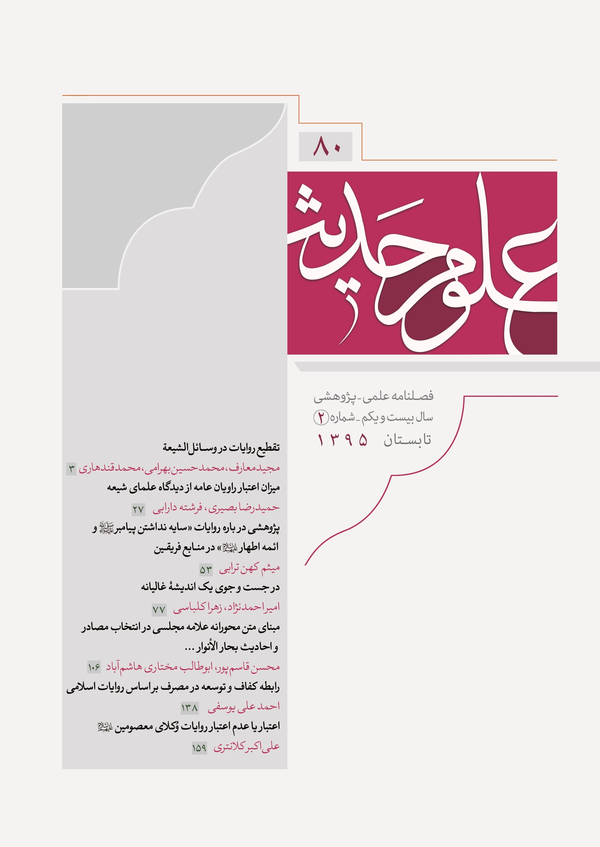 هشتادمین شماره فصلنامه علمی پژوهشی علوم حدیث منتشر شد