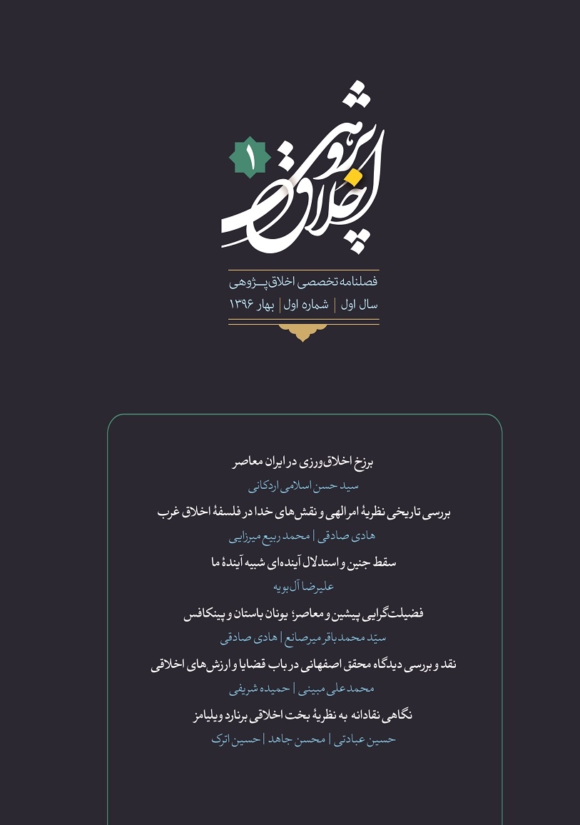 نخستین شمارۀ فصلنامۀ اخلاقپژوهی دربرگیرندۀ مجموعهای از مقالات در حوزههای متنوع اخلاق است. در مقالۀنخست با عنوان «برزخ اخلاقورزی در ایران معاصر»، با نیمنگاهی تحلیلی، ماهیت اخلاقورزی و برخی معضلات و مشکلات اندیشگی و نگرشی اخلاقورزی در ایران معاصر بازشناسی و بازگو شده است. نویسندگان مقالۀ دوم، با نگاهی تاریخی - تحلیلی به نامآشناترین تقریرهای کهن و نوظهور نظریۀ امر الهی - در فلسفۀ اخلاق غرب - و با تحلیل و تمایز نهادن میان تقریرها وتنسیقهای گونهگون آن به واکاوی نقش و نمود خدا در حوزۀ اخلاق دست یازیدهاند. مقالۀ سوم با عنوان«سقط جنین و استدلال آیندهای شبیه آیندۀ ما» به طرح و نقد استدلال دان مارکوس - موسوم به استدلال آیندهای شبیه آیندۀ ما - در هواداری از عدم جواز اخلاقی سقط جنین، اختصاص یافته و نویسنده در پایان کوشیده تا تقریری تازه و تعدیلشده و سازگار با اصول و انگارههایی چون دوگانهانگاری نفس و بدن و جاودانگی نفس، ارائه دهد که بری و بدور از اشکالات وارد بر تقریر مارکوس باشد. در مقالۀ «فضیلت گرایی پیشین و معاصر: یونان باستان و پینکافس»، افزون بر بازشناسی و بیان شاخصهها و مقومّات فضیلتگرایی در دورۀ یونان باستان، به تبیین و تحلیل دیدگاه ادموند پینکافس در باب «فروکاهشگرایی اخلاق» پرداخته شده است. تبیین وجودشناسانه و معناشناسانۀ محقق اصفهانی از حسن و قبح و لوازم مناقشهبرانگیز این ایده و ادعا در مقاله ای با عنوان «نقد و بررسی دیدگاه محقق اصفهانی در باب قضایا و ارزشهای اخلاقی» واکاوی و نقد شده است. آخرین مقالۀ این شماره نیز نگاهی تحلیلی و نقّادانه دارد به مفهوم ابداعی برنارد ویلیامز با عنوان «بخت اخلاقی» و تبیین مثالها و استدلالهایی که ویلیامز در اثبات نگرهاش بدانها توسل جسته است.
