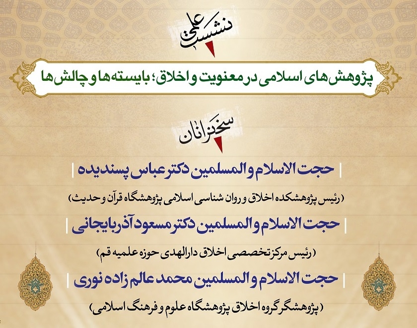 نشست علمی "پژوهش های اسلامی در معنویت و اخلاق؛ بایسته ها و چالش ها" برگزار می شود