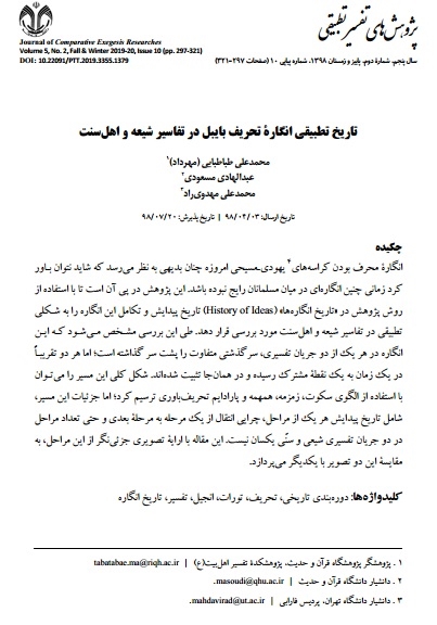 انگارۀ محرف بودن کراسههای یهودیـمسیحی امروزه چنان بدیهی به نظر میرسد که شاید باورنکردنی به نظر برسد که زمانی چنین انگارهای در میان مسلمانان رایج نبوده باشد. این پژوهش در پی آن است تا با استفاده از روش پژوهش در «تاریخ انگارهها» (History of Ideas) تاریخ پیدایش و تکامل این انگاره را به شکلی تطبیقی در تفاسیر شیعه و اهل سنت مورد بررسی قرار دهد. طی این بررسی مشخص میشود که این انگاره در هر یک از دو جریان تفسیری سرگذشتی متفاوت را پشت سر گذاشته است؛ اما هر دو تقریبا در یک زمان به یک نقطۀ مشترک رسیده و در همان جا تثبیت شدهاند. شکل کلی این مسیر را میتوان با استفاده از الگوی سکوت ـ زمزمه ـ همهمه ـ پارادایم تحریفباوری ترسیم کرد؛ اما جزئیات این مسیر، شامل تاریخ پیدایش هر یک از مراحل، چرایی انتقال از یک مرحلۀ به مرحلۀ بعدی و حتی تعداد مراحل در دو جریان تفسیری شیعی و سنّی یکسان نیست. این مقاله با ارائۀ تصویری جزئینگر از این مراحل، به مقایسۀ این دو تصویر با یکدیگر میپردازد.