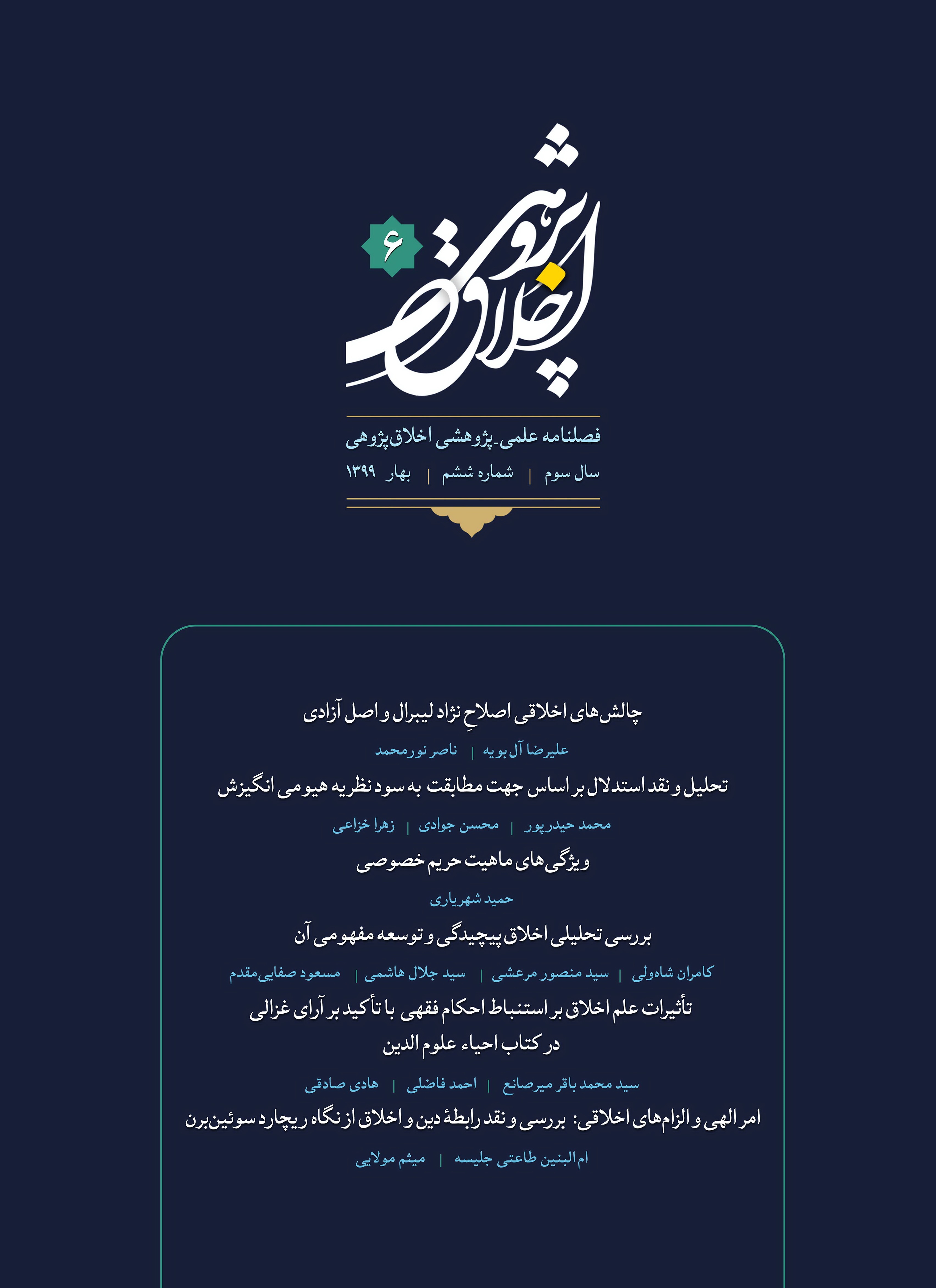 در این شماره از فصلنامه اخلاق پژوهی می خوانید: