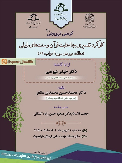کرسی علمی ترویجی " کارکرد تفسیری بینامتنیت قرآن و سنت‌های بایبلی" برگزار می شود