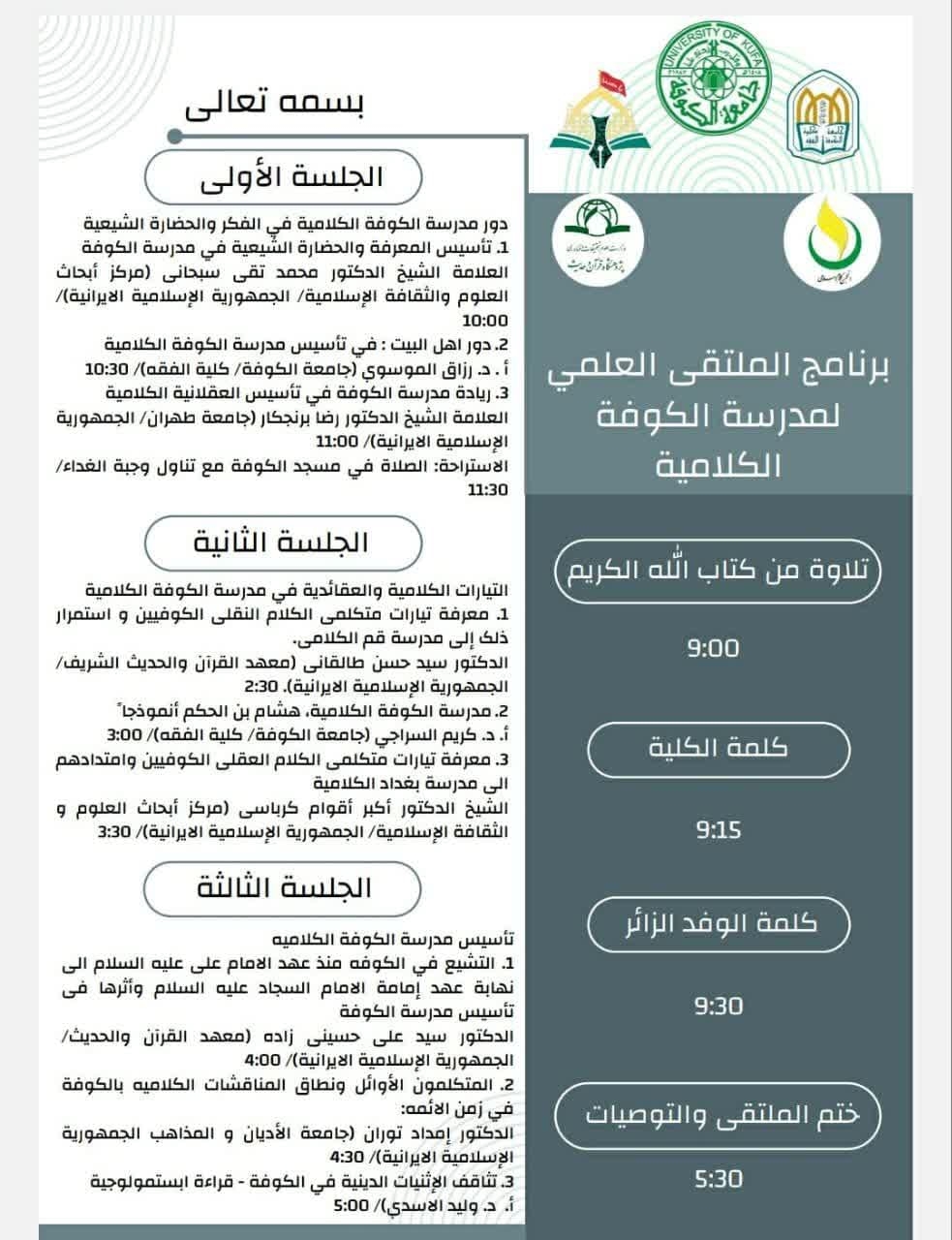 الجلسة الأولى دور مدرسة الكوفة الكلامية في الفكر والحضارة الشيعية
